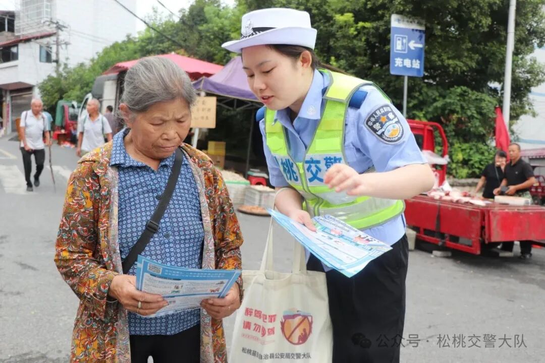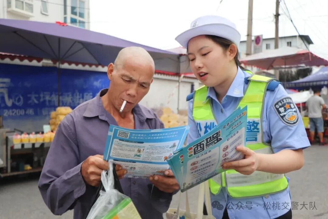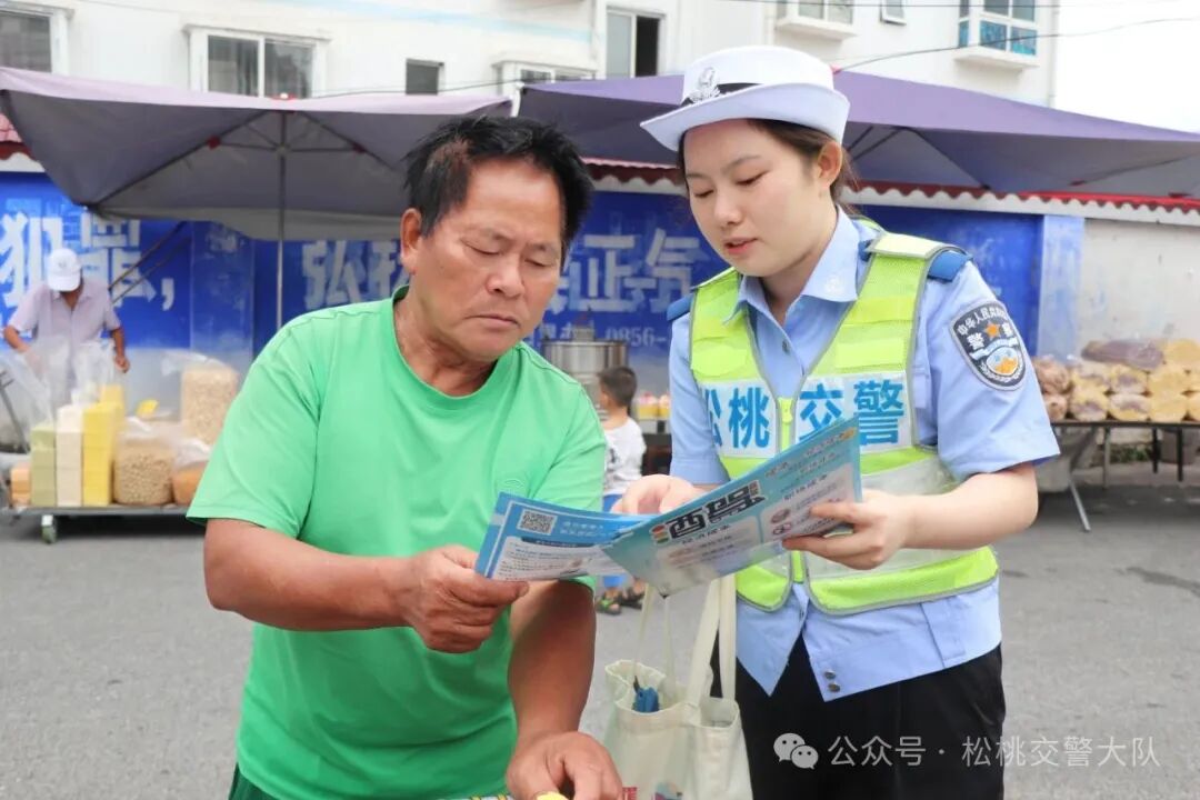 为切实提升农村地区交通参与者的交通安全意识、法治意识和文明意识,全力预防和减少农村道路交通事故,努力提高农村群众的交通安全指数,着力构建农村交通安全宣传教育新格局。2025年8月25日,松桃苗族自治县公安局交警大队以大坪场镇赶集为契机,走进集市开展交通安全宣传活动,把交通安全知识送到群众心坎上。