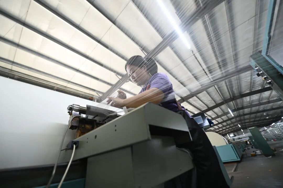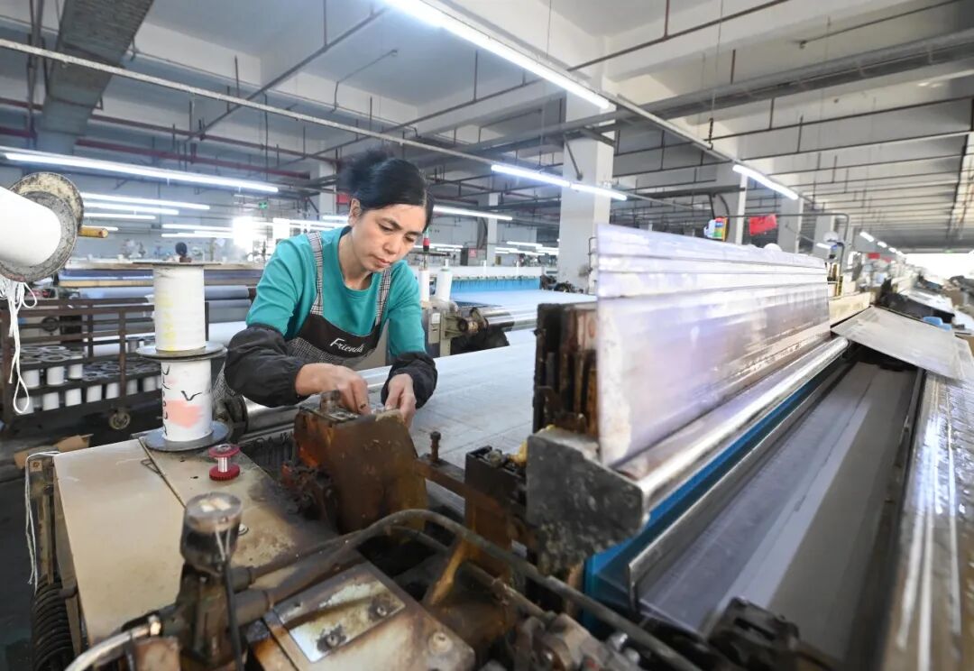 国庆假期结束,松桃的企业开足马力,生产一线一派热火朝天的景象。10月8日,在松桃大川纺织有限公司,工人们在各个车间忙碌,赶制高档仿真丝面料。